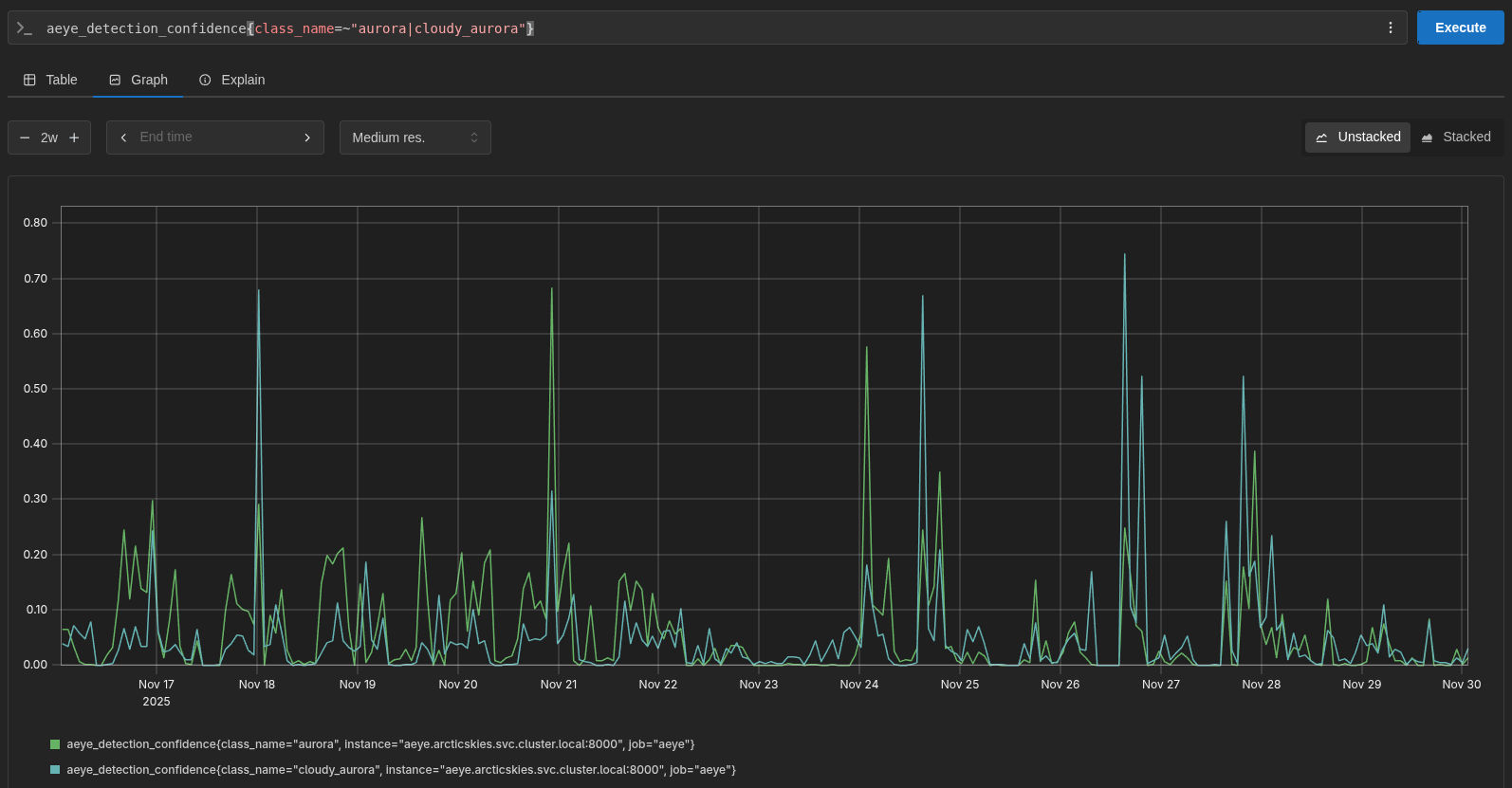À data de escrita deste artigo, o modelo tem estado a correr e a observar a stream por algumas semanas. E certo, às vezes ainda marca algumas nuvens ou outros artefactos como auroras, mas muito rapidamente volta a corrigir essa decisão poucos frames depois. São raras estas ocasiões e, na maior parte dos casos, está certo, o que me tem ajudado a saber quando há auroras para fazer os vídeos de timelapse!